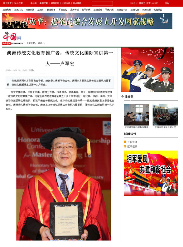 2015-12-31 「中国网」澳洲传统文化教育推广者,传统文化国际宣讲第一人——卢军宏